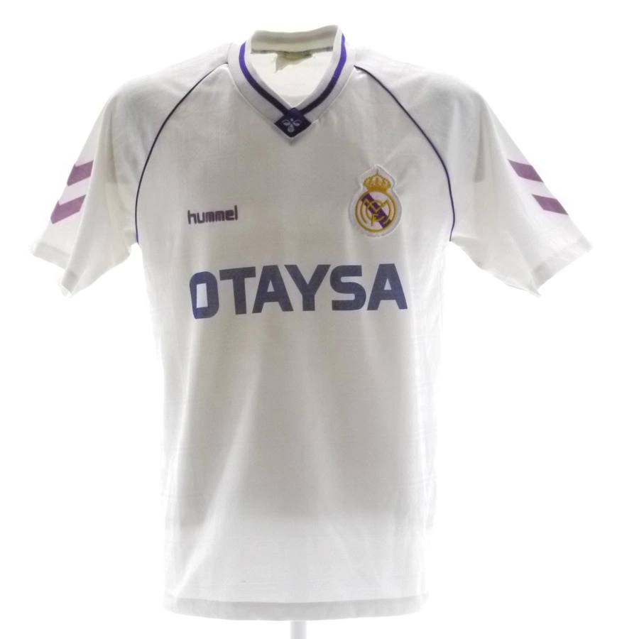 La maglia gara del Real Madrid preparata / indossata da Hugo Sánchez in occasione di una partita di LaLiga stagione 1991/92.
