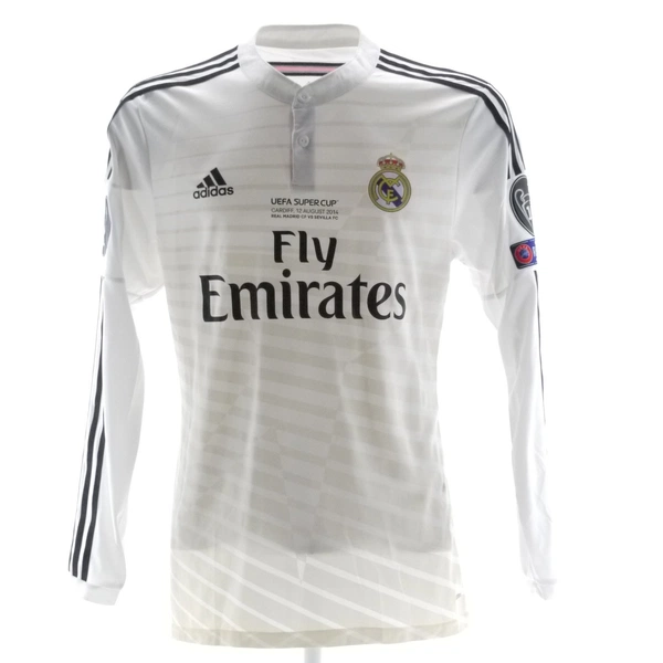 Maglia gara del Real Madrid preparata / indossata da Ronaldo nella partita partita contro il Siviglia giocata il 12/08/2014, valida per la finale di Supercoppa UEFA, stagione 2014/15.
