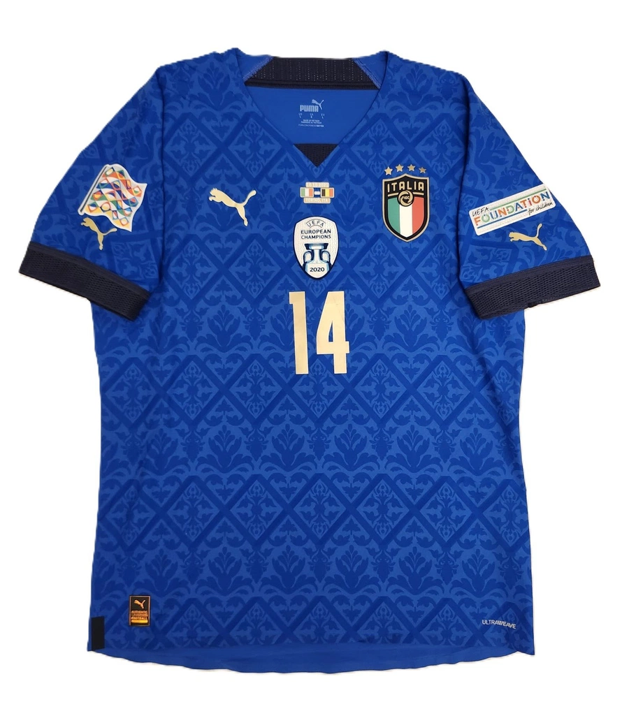La maglia gara dell'Italia preparata / indossata da Chiesa nella partita contro il Belgio giocata il 10/10/2021, valida per la finale per il terzo posto di Nations League.