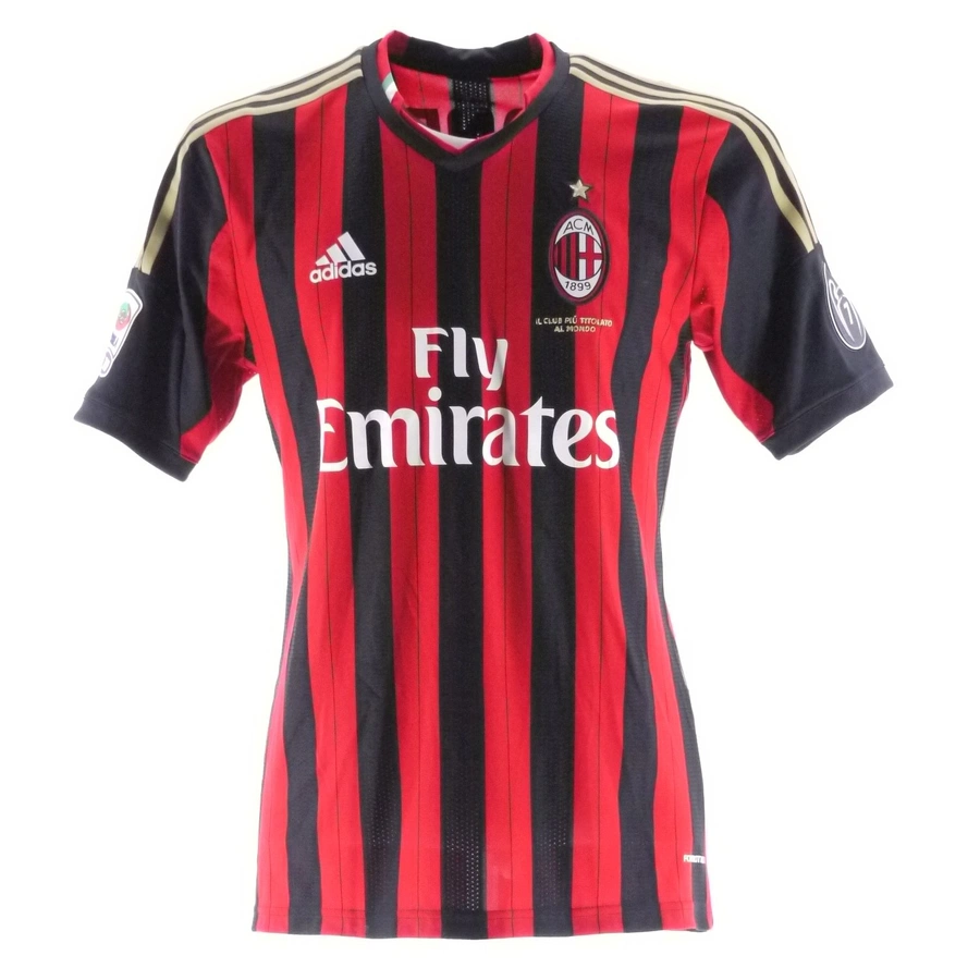 Maglia gara del Milan preparata / indossata da Honda in occasione di una partita di Serie A, stagione 2013/14.
