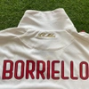 Questo cimelio fa parte della fornitura gara messa a disposizione degli atleti in occasione delle competizioni ufficiali e differisce nelle sue caratteristiche peculiari dai prodotti messi in commercio dallo sponsor tecnico, potrebbe essere stato indossato in partita e lavato dopo il termine della gara oppure preparato per il match ma poi non utilizzato.