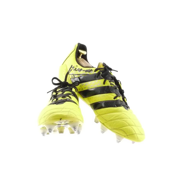 Questo cimelio fa parte della fornitura gara messa a disposizione degli atleti in occasione delle competizioni ufficiali e differisce nelle sue caratteristiche peculiari dai prodotti messi in commercio dallo sponsor tecnico, potrebbe essere stato indossato in partita e lavato dopo il termine della gara oppure preparato per il match ma poi non utilizzato.