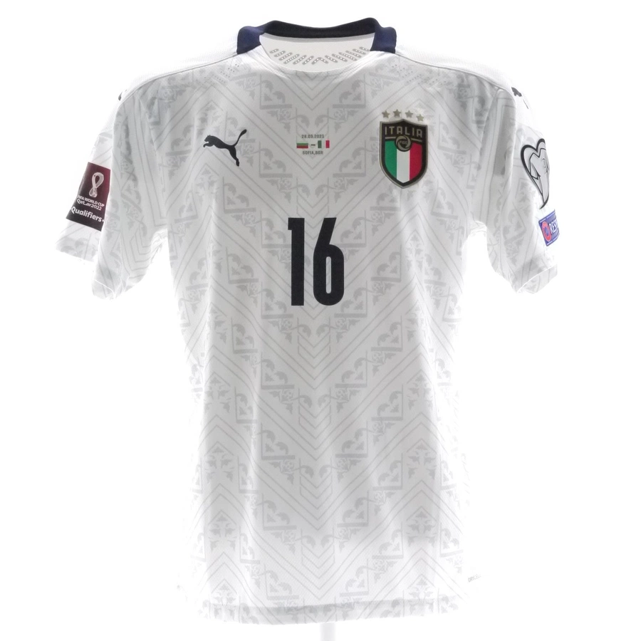 Maglia gara dell'Italia preparata / indossata da Florenzi in occasione della partita di qualificazione ai mondiali contro la Bulgaria, giocata in data 28/03/2021, stagione 2020/21.