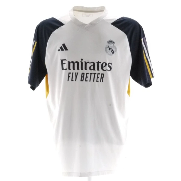 Maglia d'allenamento pre-partita del Real Madrid preparata / indossata da un giocatore della rosa, stagione 2023/24.