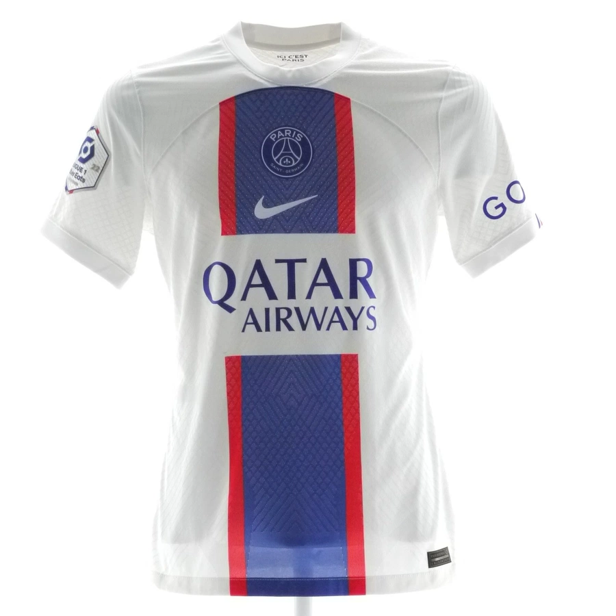 Maglia gara del Paris Saint-Germain preparata / indossata da Messi in occasione di una partita di Ligue1, stagione 2022/23.