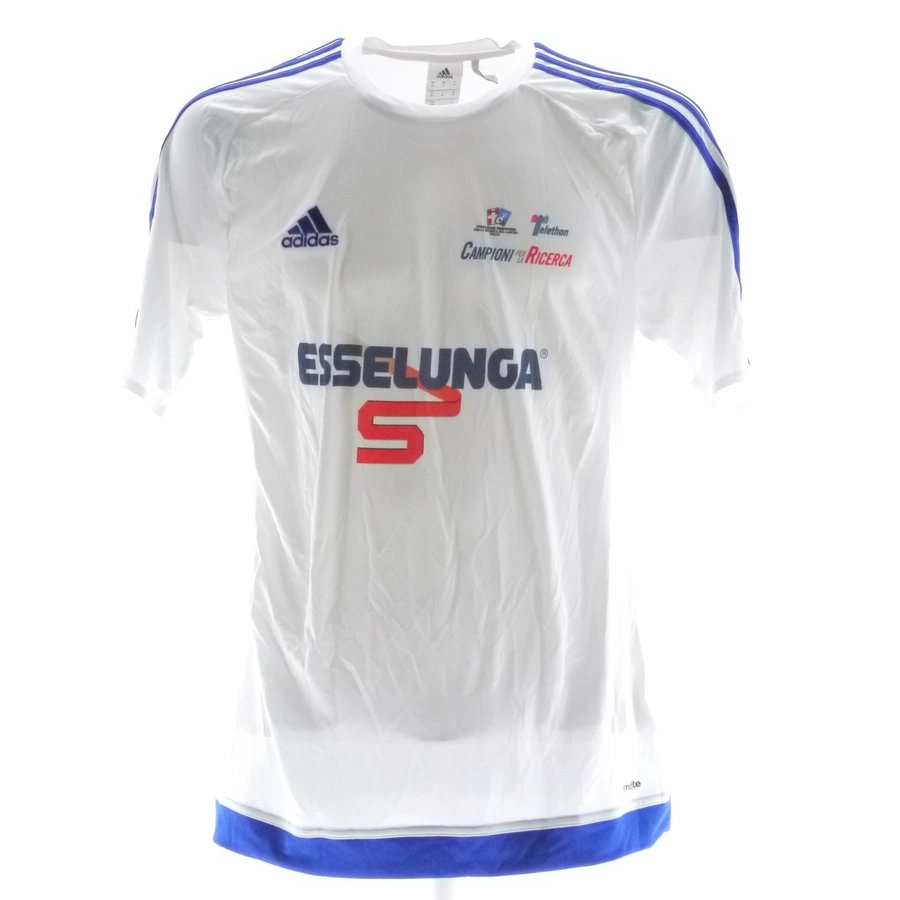 Questo cimelio fa parte della fornitura gara messa a disposizione degli atleti in occasione delle competizioni ufficiali e differisce nelle sue caratteristiche pecuriali dai prodotti messi in commercio dallo sponsor tecnico, potrebbe essere stato indossato in partita e lavato dopo il termine della gara oppure preparato per il match ma poi non utilizzato.