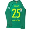 Questo cimelio fa parte della fornitura gara messa a disposizione degli atleti in occasione delle competizioni ufficiali e differisce nelle sue caratteristiche peculiari dai prodotti messi in commercio dallo sponsor tecnico, potrebbe essere stato indossato in partita e lavato dopo il termine della gara oppure preparato per il match ma poi non utilizzato.