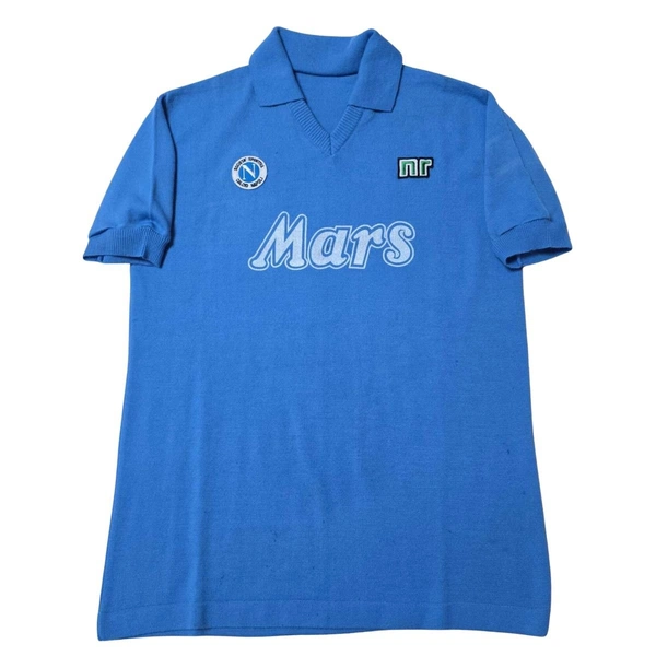 Maglia gara del Napoli preparata / indossata dal Maradona in occasione di una partita ufficiale, stagione 1988/89.