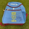 Lo zaino della sezione giovanile delle Fiamme Oro autografato da Simone Corsi.