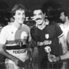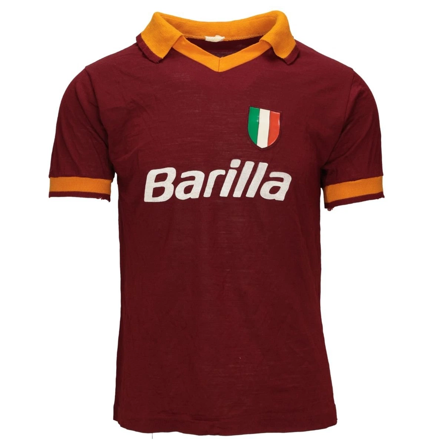 La maglia gara della Roma indossata da Cerezo nella partita amichevole contro il San Paolo giocata all'estádio Cícero Pompeu de Toledo in Brasile il 03/02/1984, stagione 1983/84.