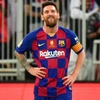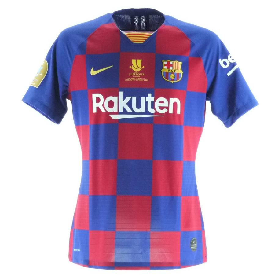 La maglia gara del Barcellona preparata / indossata da Messi per la partita contro l'Atletico Madrid giocata il 09/01/2020, valida per il ritorno della semifinale di Supercoppa di Spagna, stagione 2019/20.