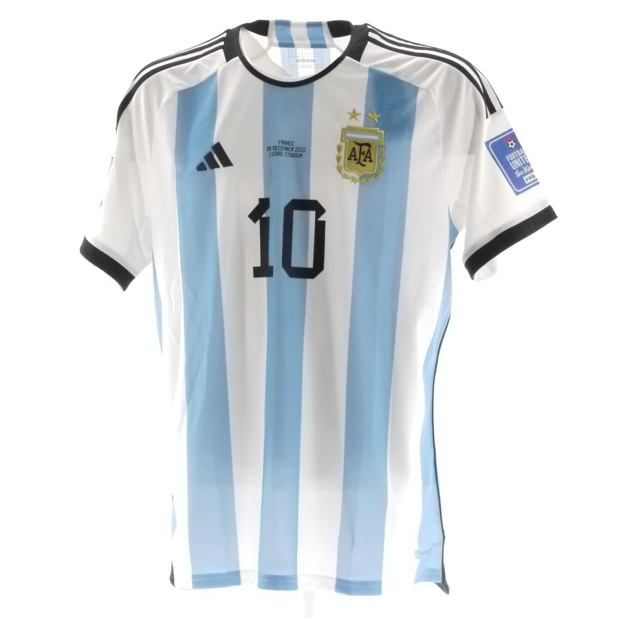 La maglia presenta sul petto i dettagli del match della finale di Coppa del Mondo vinta dall'Argentina.