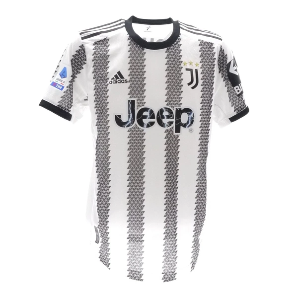 La maglia gara della Juventus preparata / indossata da Vlahovic in occasione di una partita di Serie A, stagione 2022/23.