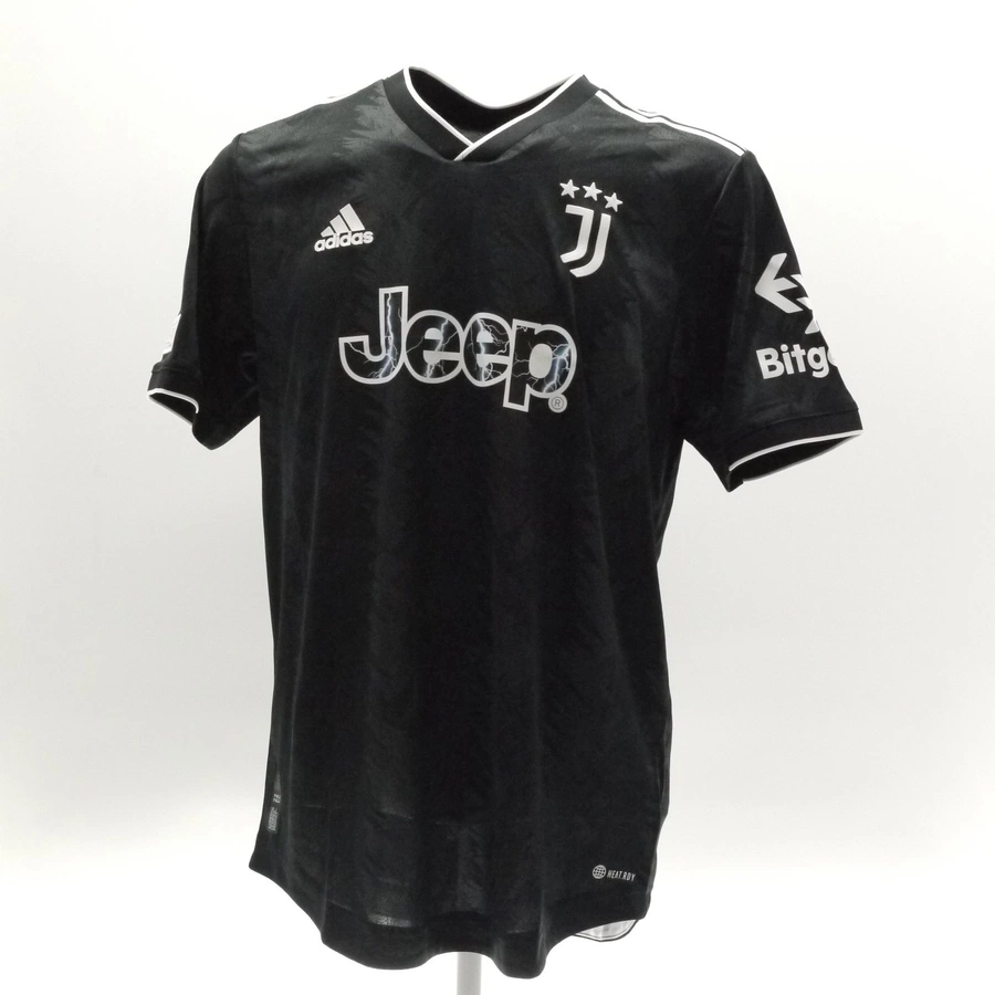 La maglia gara della Juventus preparata / indossata da Vlahovic valida per una partita di Champions League, stagione 2022/2023