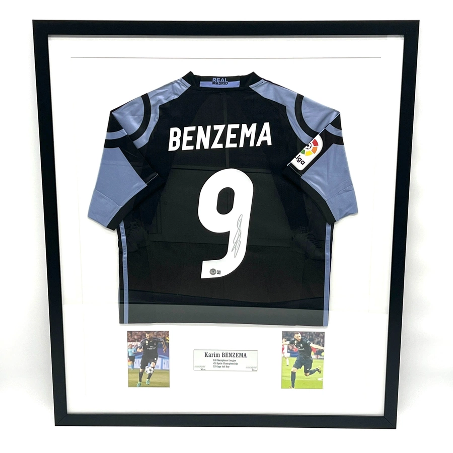 Maglia store Benzema Real Madrid | Autografata con COA | Incorniciata