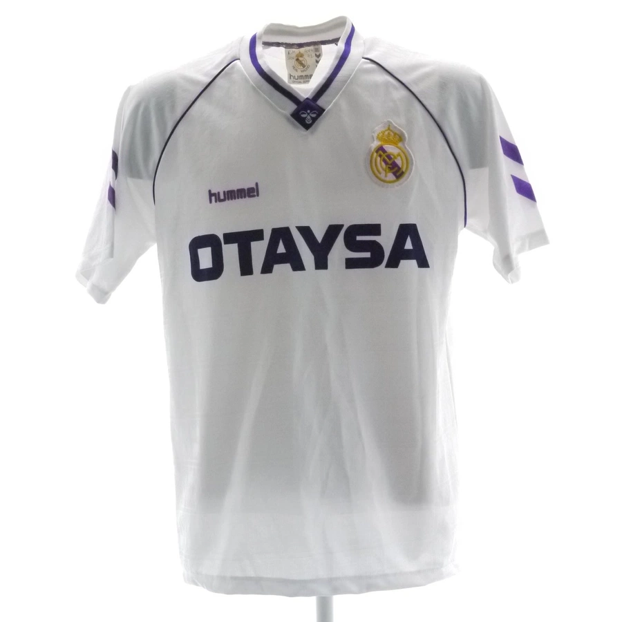 La maglia gara del Real Madrid preparata/indossata da Michel in occasione di una partita ufficiale, stagione 1991/92.