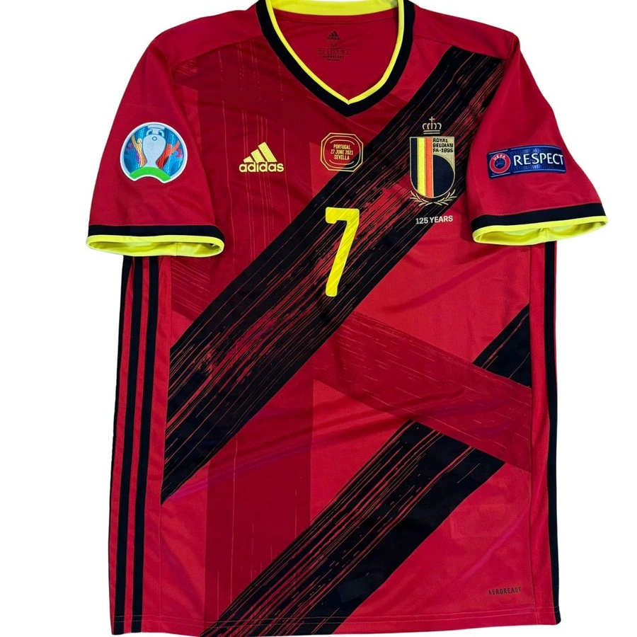 Maglia gara del Belgio preparata / indossata da De Bruyne nella partita giocata contro il Portogallo il 27/06/2021, valida per gli ottavi di finale di Euro2020, stagione 2020/21.