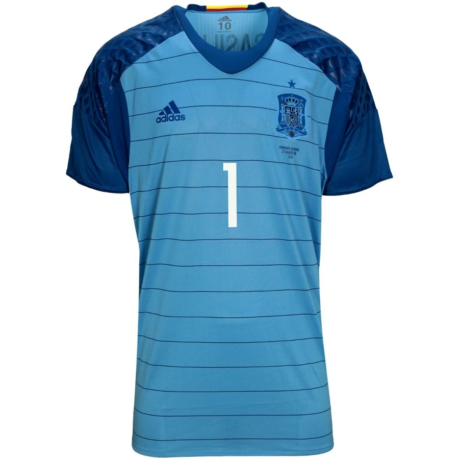 Maglia gara della Spagna preparata/indossata da Casillas in occasione della partita amichevole giocata contro la Romania il 27 Marzo 2016, stagione 2015/16.