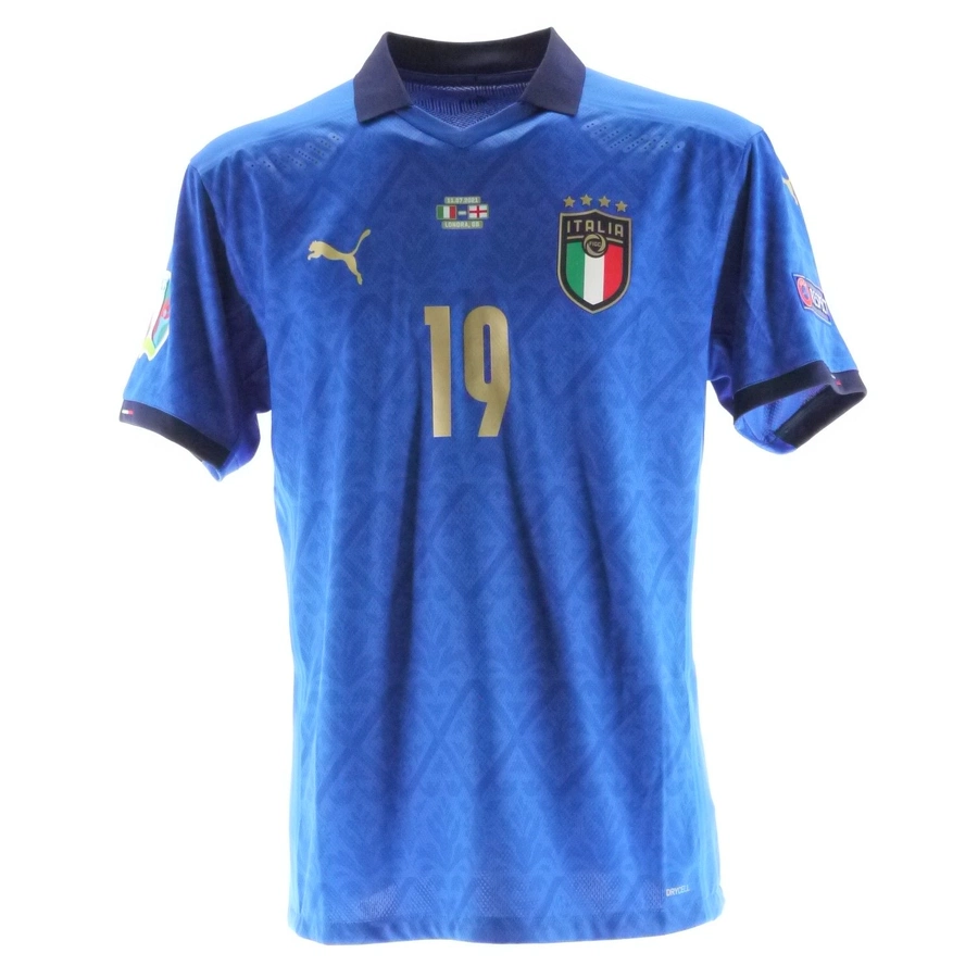 La maglia gara dell'Italia preparata / indossata da Bonucci in occasione della finale di Euro2020 contro l'Inghilterra giocata il 11/07/21, stagione 2020/2021.