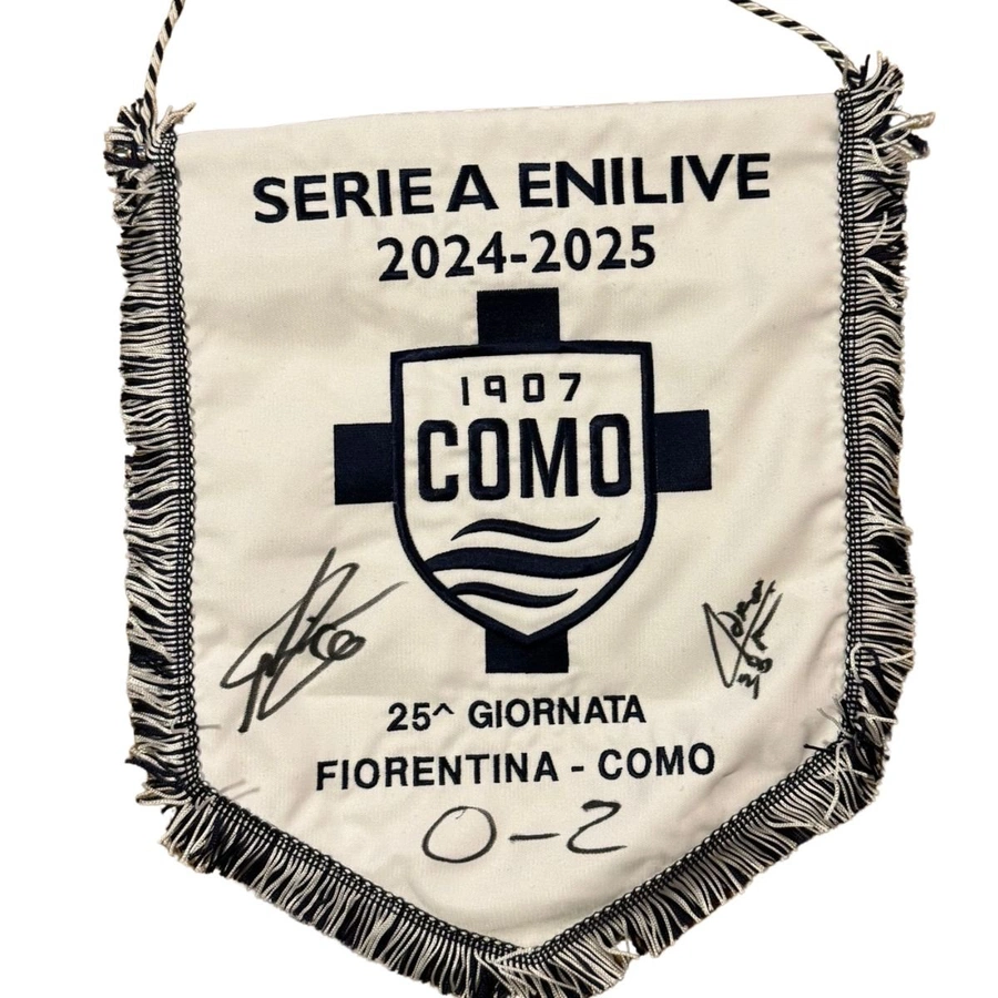 The match, valid for the 25th round of Serie A, ended with Como’s 2–0 victory. The scorers for Como, Diao and Nico Paz, have signed the pennant on the front.