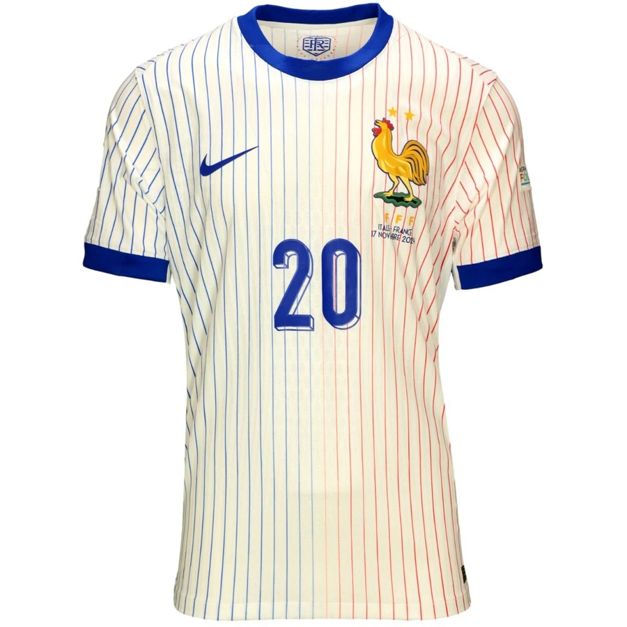 France match shirt issued/worn by Barcola for the match against Italy, valid for the group stage, played on 17/11/2024, 2024 season.