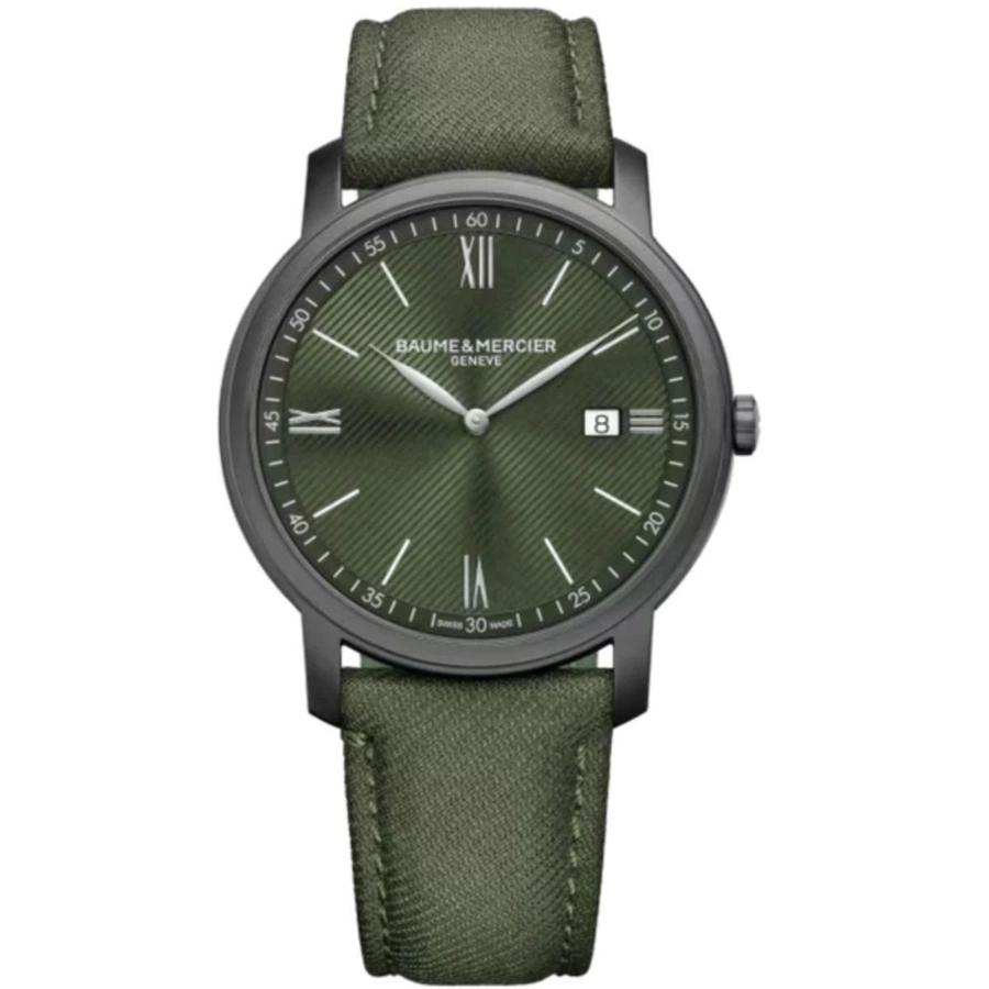 Designed for those who value versatility, the watch features an interchangeable strap in fine Holland & Sherry green fabric, perfect for transitioning seamlessly from the urban landscape to the great outdoors. This is more than just a way to tell time—it's a statement of lifestyle, a trusted companion always ready for the next journey..