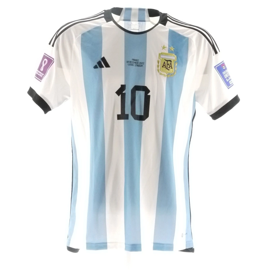 Argentina store shirt, 2022 season, customized with Messi name and number.