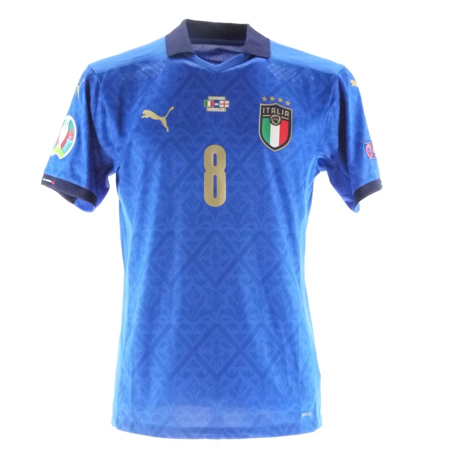 Italy match shirt issued / worn by Jorginho for the Euro2020 final against England played on 11/07/2020, 2021 season.