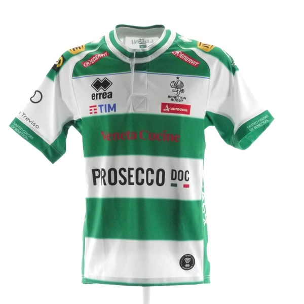 The jersey was autographed on the back by the Benetton Rugby Treviso squad: Izekor, Garbisi, Cannone, Gallo, Gasperini, Ferrari, Spagnolo, Bernasconi, and Favaretto.