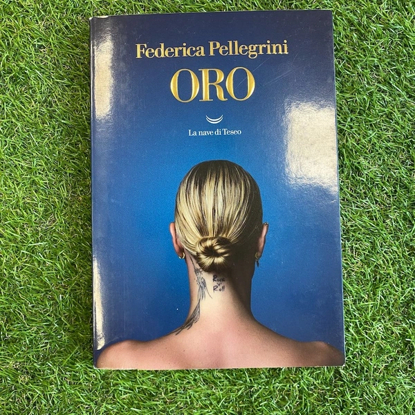 Federica Pellegrini's swimming cap, accompanied by the autographed "Gold" book.
