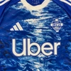 This memorabilia is part of the match supply made available to players during official competitions and is different in its features in relation to the ones sold in fanshops, it could have been worn during the match and washed after the end of the match or prepared for the match but then not used.