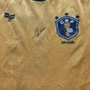 This memorabilia is part of the match supply made available to players during official competitions and is different in its features in relation to the ones sold in fanshops, it could have been worn during the match and washed after the end of the match or prepared for the match but then not used.