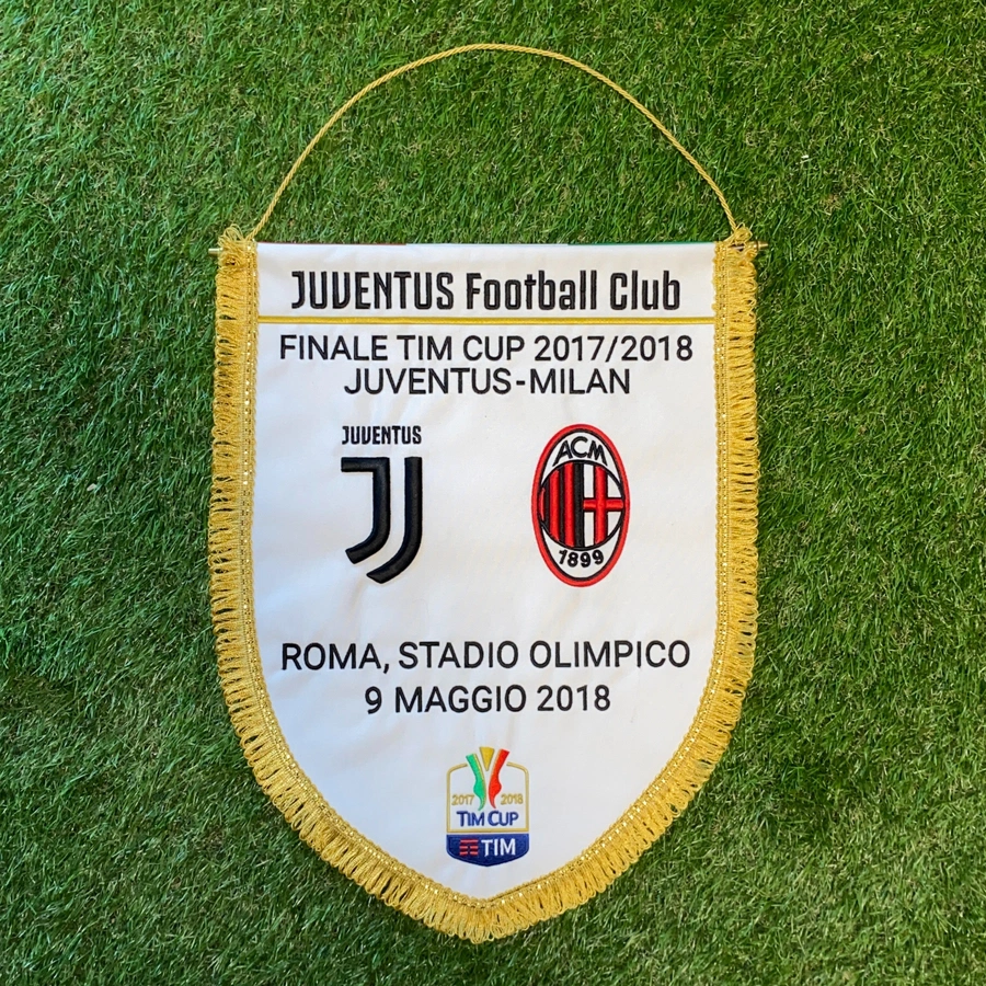 The official Juventus pennant valid for the Italian cup final against Milan played on 09/05/2018, season 2017/2018.