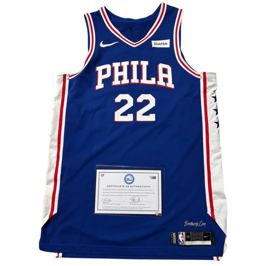 Canotta gara dei Philadelphia 76ers preparata / indossata da Chandler in occasione di una partita di NBA, stagione 2018/19.