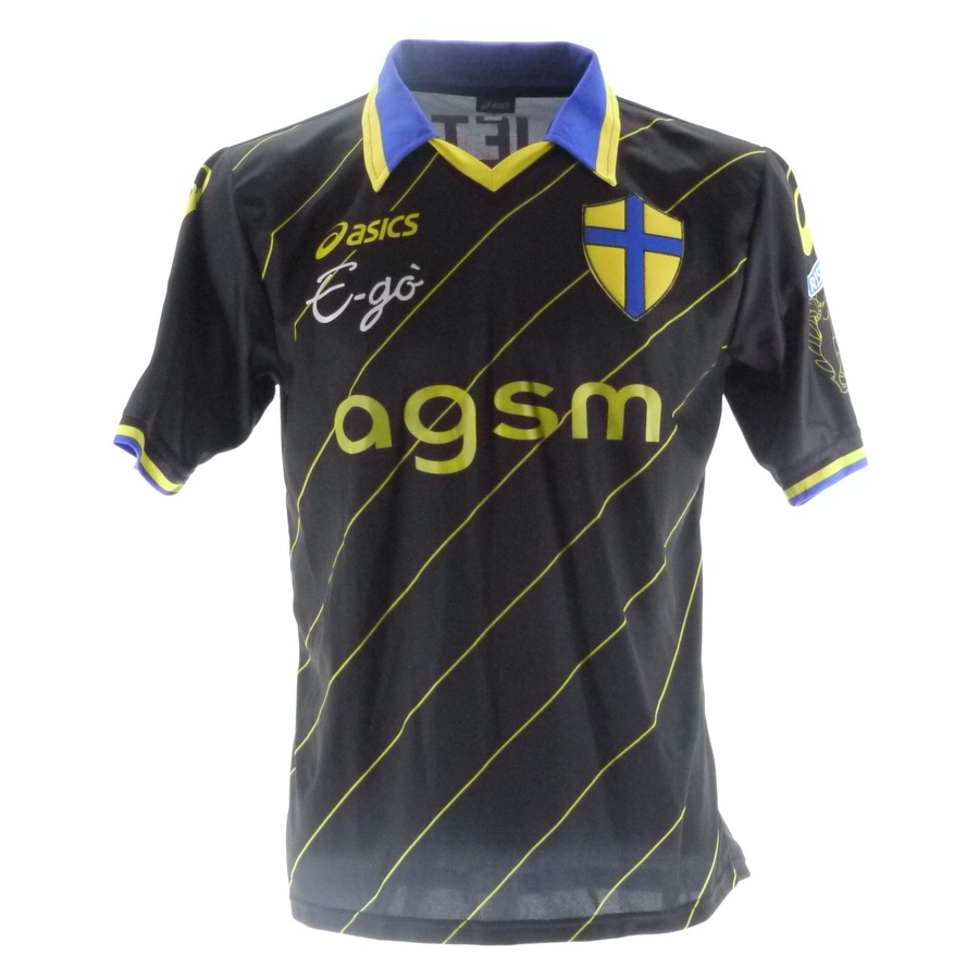 Questo cimelio fa parte della fornitura gara messa a disposizione degli atleti in occasione delle competizioni ufficiali e differisce nelle sue caratteristiche peculiari dai prodotti messi in commercio dallo sponsor tecnico, potrebbe essere stato indossato in partita e lavato dopo il termine della gara oppure preparato per il match ma poi non utilizzato.