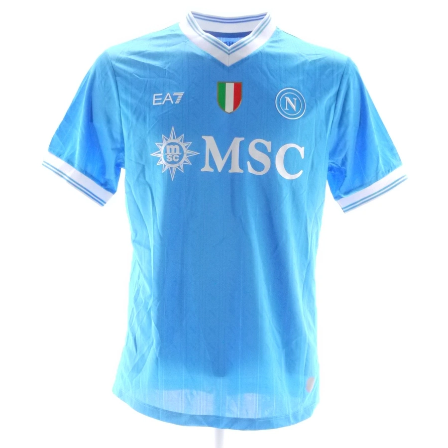 La maglia gara del Napoli indossata da Mazzocchi in occasione della partita amichevole contro il Brest giocata il 03/08/25, stagione 2025/26.