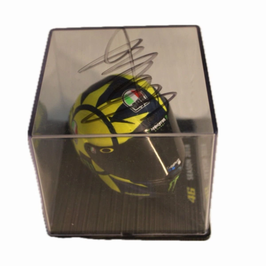 Valentino Rossi ha autografato il casco sulla teca protettiva.