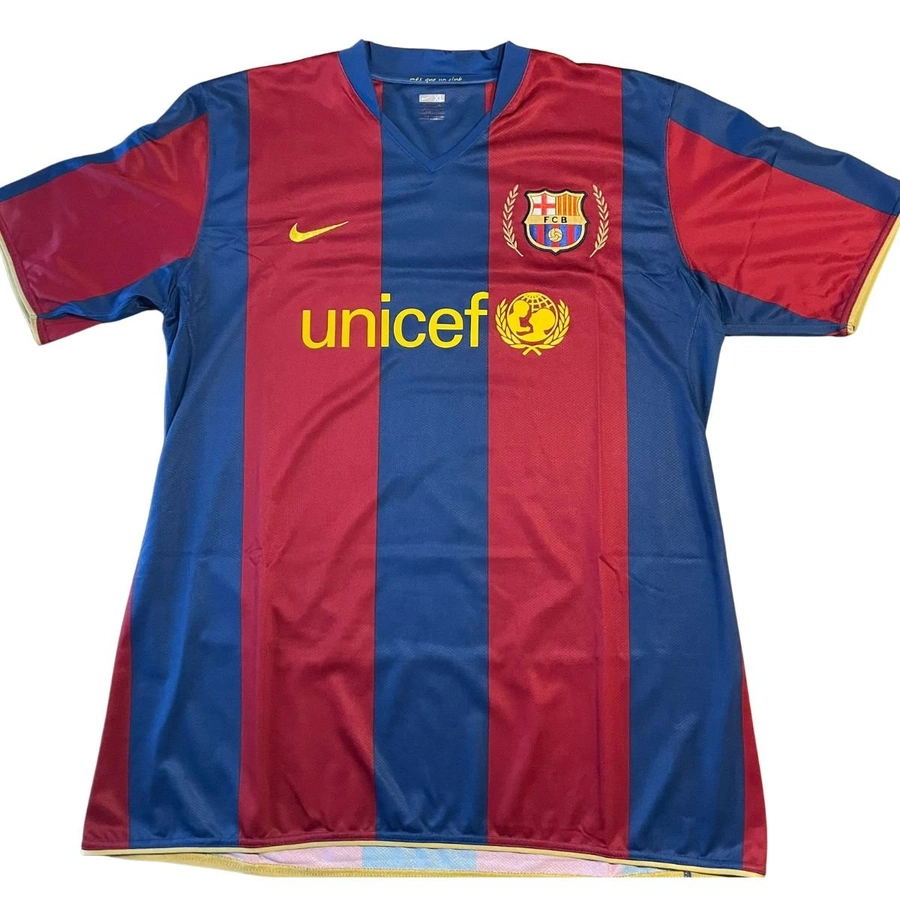 Maglia gara del Barcellona preparata / indossata da Ronaldinho in occasione della partita di Champions League contro il Lione giocata il 19/07/2007 ,valida per la fase a gironi, stagione 2007/08.
