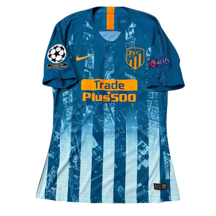 Maglia gara dell'Atletico Madrid preparata / indossata da Saul in occasione di una partita di Champions League, stagione 2018/19.