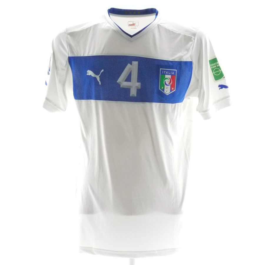 Questo cimelio fa parte della fornitura gara messa a disposizione degli atleti in occasione delle competizioni ufficiali e differisce nelle sue caratteristiche peculiari dai prodotti messi in commercio dallo sponsor tecnico, potrebbe essere stato indossato in partita e lavato dopo il termine della gara oppure preparato per il match ma poi non utilizzato.