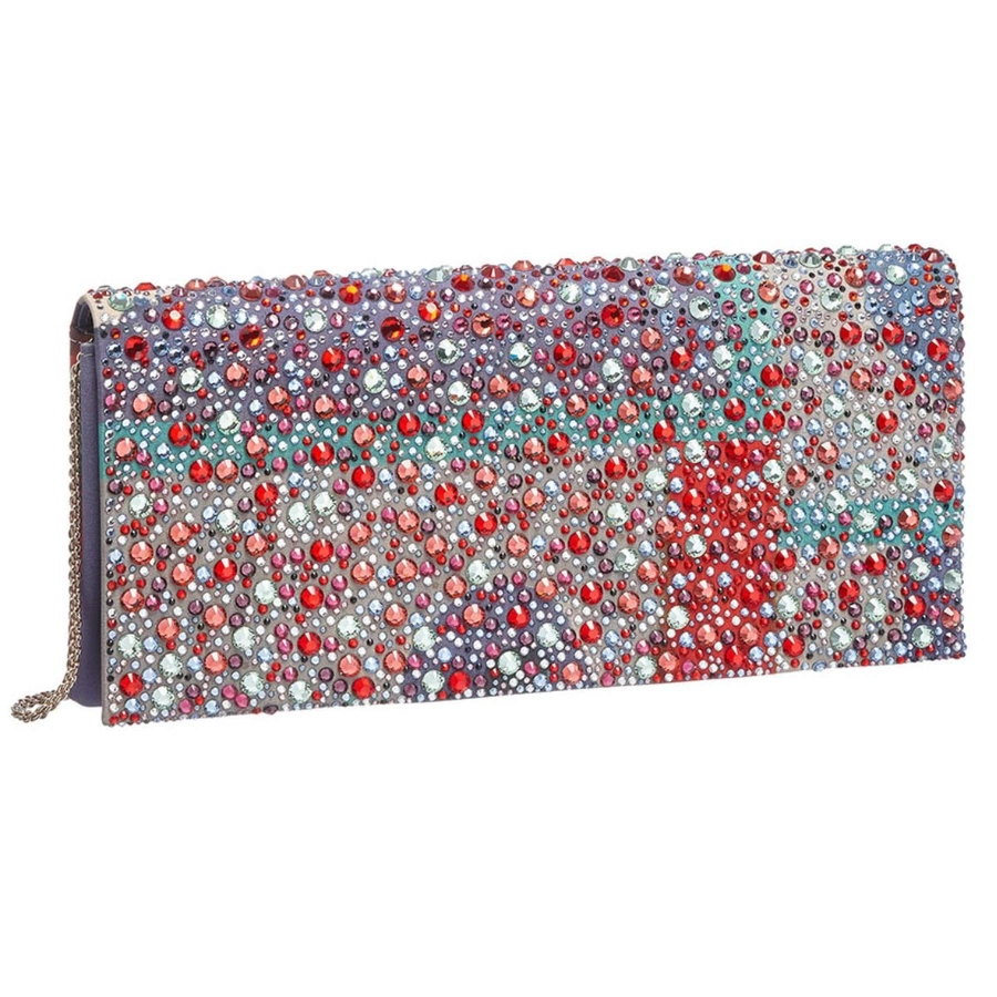 Clutch Giorgio Armani realizzata in tessuto e illuminata da strass multicolore. Un accessorio elegante e femminile con tracolla a catena, che si presta ad essere indossato durante occasioni speciali.