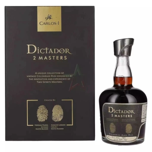 Dictador 2 Masters Carlos I Colombian Aged Rum 1980 è il risultato di una collaborazione tra il Gruppo Osborne e l'ultima versione di rum ultra-premium in edizione limitata, creata dal Master Blender di Dictador Hernan Parra e dall'ex miscelatore di sherry e brandy Ignacio Lozano. Questa annata matura in botti di Carlos I Brandy de Jerez, che hanno un'età media di 50-60 anni. I migliori sherry Oloroso e Amontillado sono già stati conservati in queste botti speciali per oltre 20 anni. Il risultato è un rum cubano di oltre 40 anni con eccellenti aromi mediterranei e di nocciola.