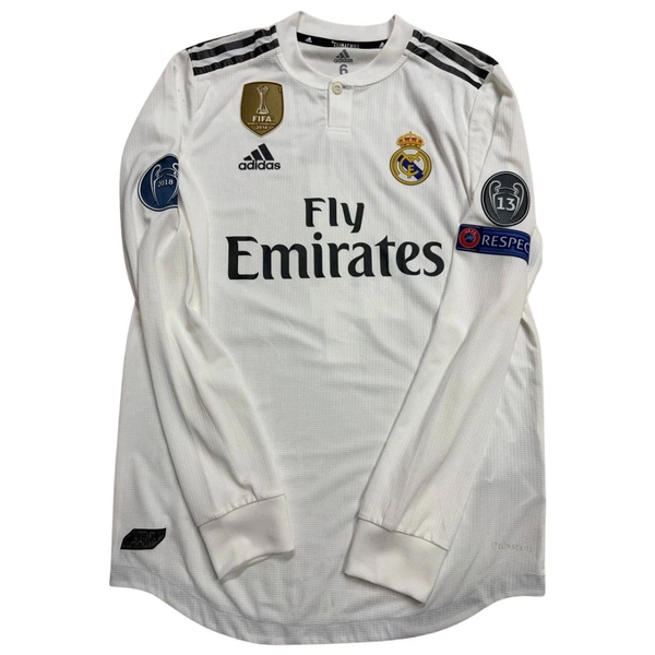 Maglia gara del Real Madrid preparata / indossata da Sergio Ramos in occasione di una partita di Champions League, stagione 2018/19.