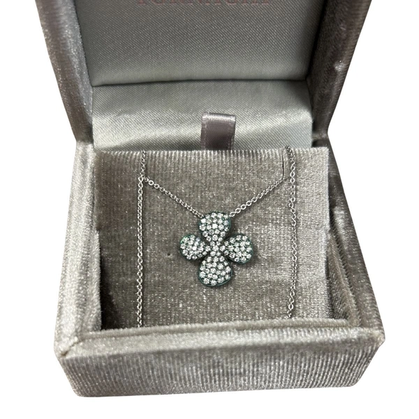 Girocollo 4LUCK in oro bianco 18 kt con pendente titanio colore verde e pavè di diamanti taglio brillante peso complessivo 0,55 ct.