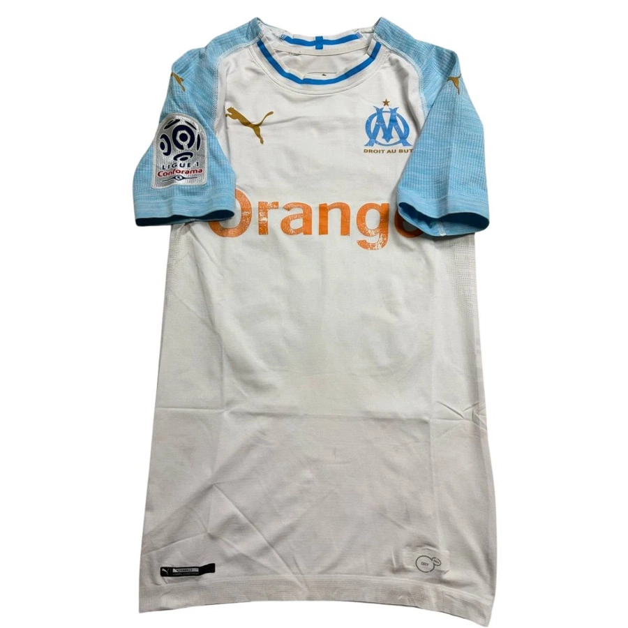 Maglia gara dell'Olimpique Marsiglia preparata / indossata da Mandanda in occasione di una partita di Ligue 1, stagione 2018/19.