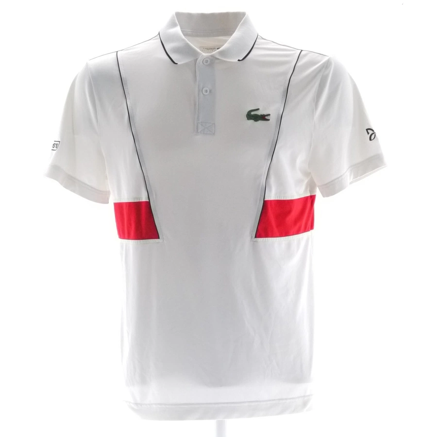 - Dimensione del coccodrillo Lacoste sul petto: più piccolo nelle maglie store e di dimensioni maggiori in quelle gara