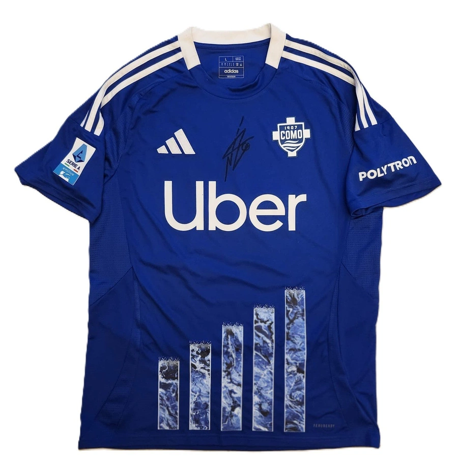 Nico Paz ha autografato la maglia sul fronte. La maglia è dotata del chip Matchwornshirt NFC, che certifica l'autografo e la partita in cui la maglia è stata indossata.