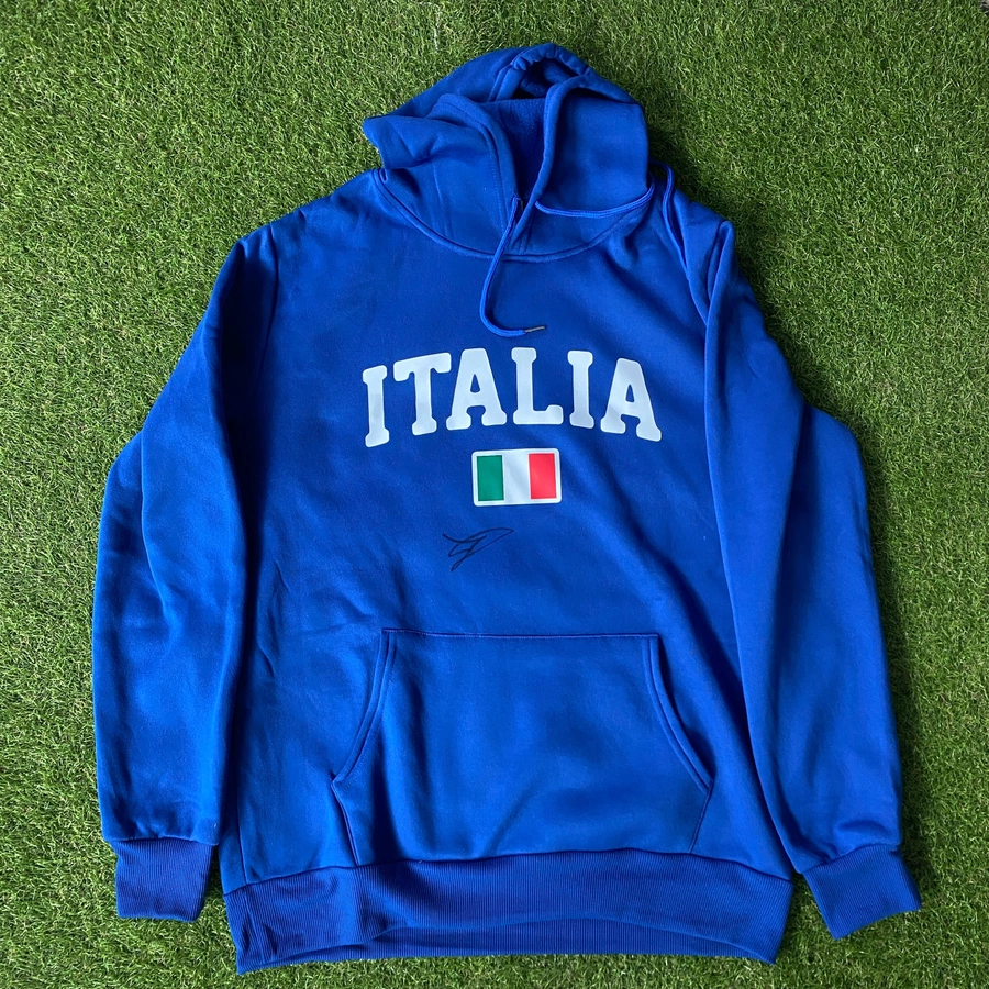 Felpa con cappuccio blu dell'Italia.