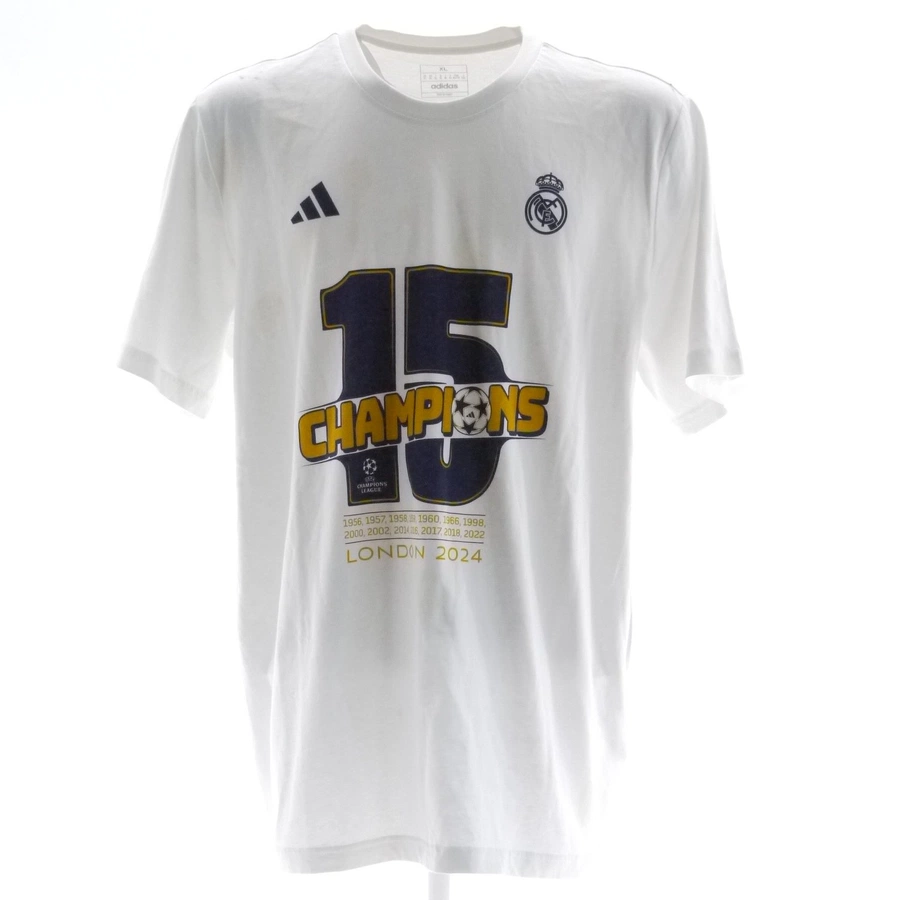 T-shirt celebrativa del Real Madrid preparata / indossata da un giocatore della rosa durante i festeggiamenti per la 15° Champions League vinta, stagione 2023/24.