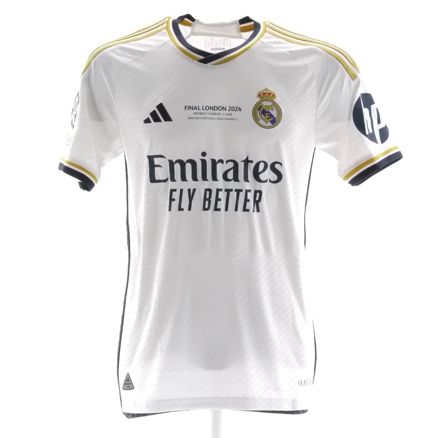 Maglia gara del Real Madrid preparata / indossata da Vinicius Jr in occasione della finale di Champions League contro il Borussia Dortmund valida per la finale di Champions League, giocata il 01/06/2024, stagione 2023/24.